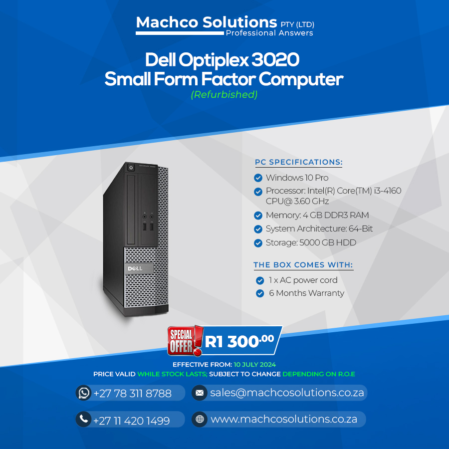 Dell Optiplex 3020 Small Form Factor Computer – Refurbished