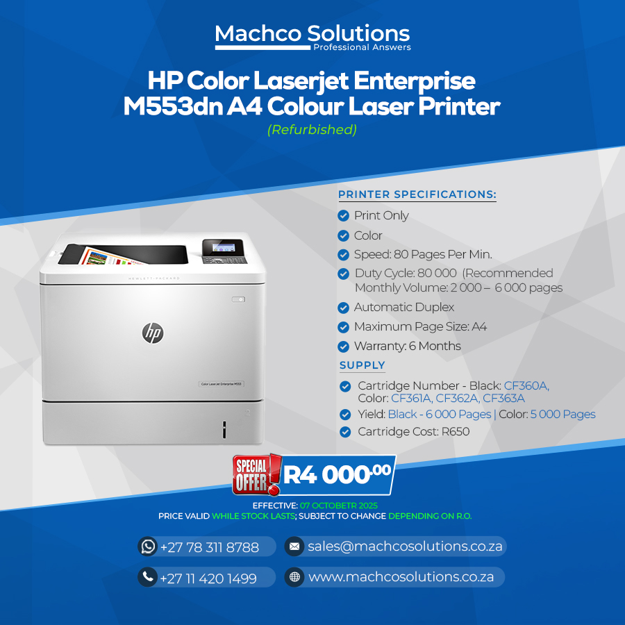 HP Color Laserjet Enterprise M553dn A4 Colour Laser Printer (Refurbished)