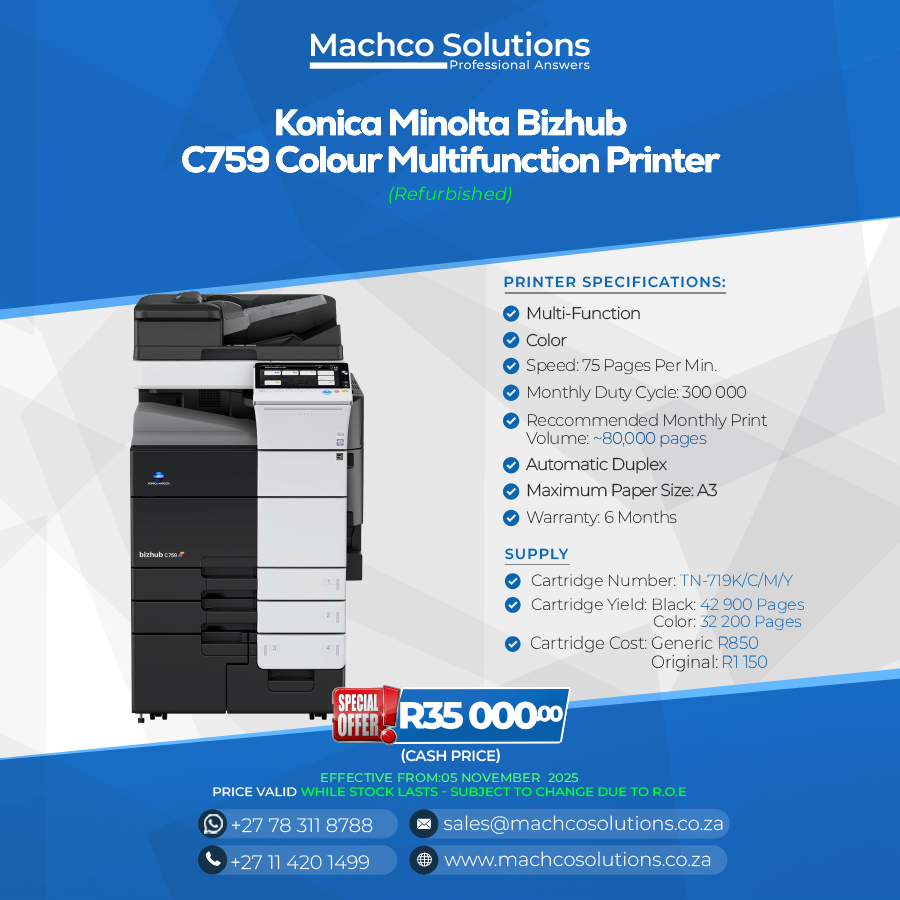 Konica Minolta Bizhub C759 Multifunction Printer – Refurbished
