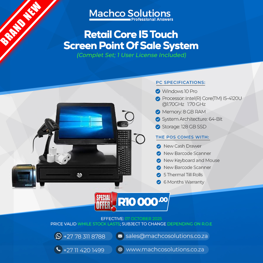 This POS system comes with a Core i5 processor and a touch screen for easy use. It can be used in retail stores, restaurants, and other businesses that need a point of sale system.
